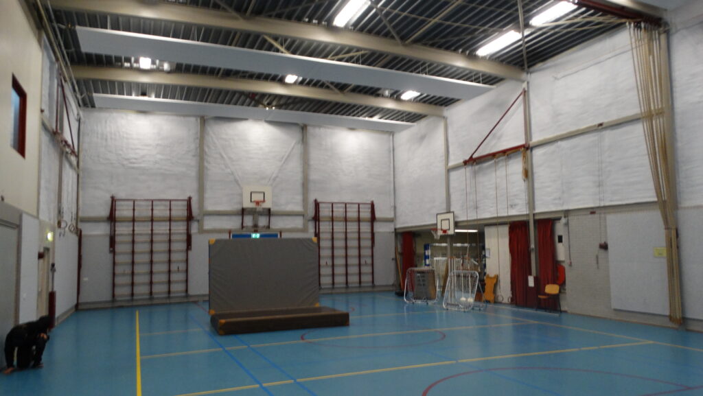 De Gymzaal is een ruime zaal van 22 x 13 meter en is voorzien van verwarming. Daardoor is de ruimte niet alleen geschikt voor sport en bewegen, maar ook heel praktisch voor andere activiteiten, zoals repetities van orkesten of kinderfeestjes. De gymzaal is bovendien recent geïsoleerd, wat zorgt voor extra comfort.